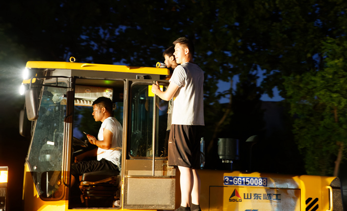 集團十余名員工及多臺設(shè)備參與牧野湖、定國湖、新中大道與中原路交叉口等市內(nèi)重點“防御陣線”的建設(shè)。