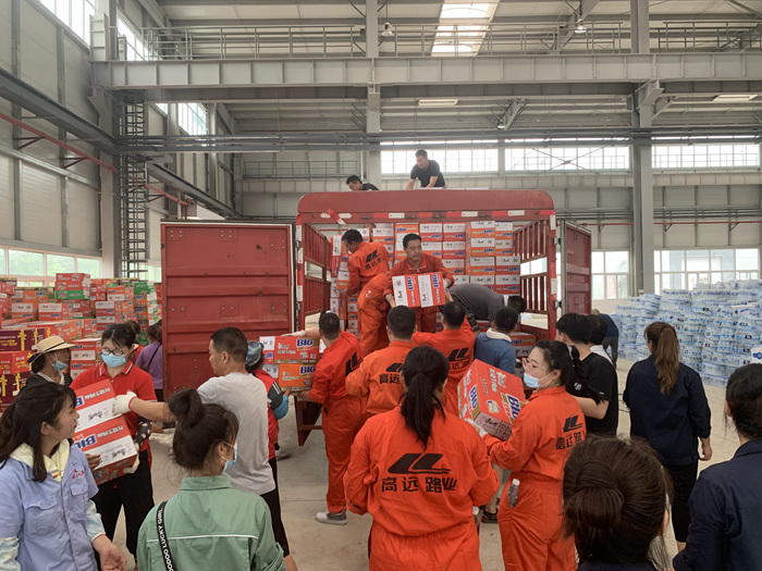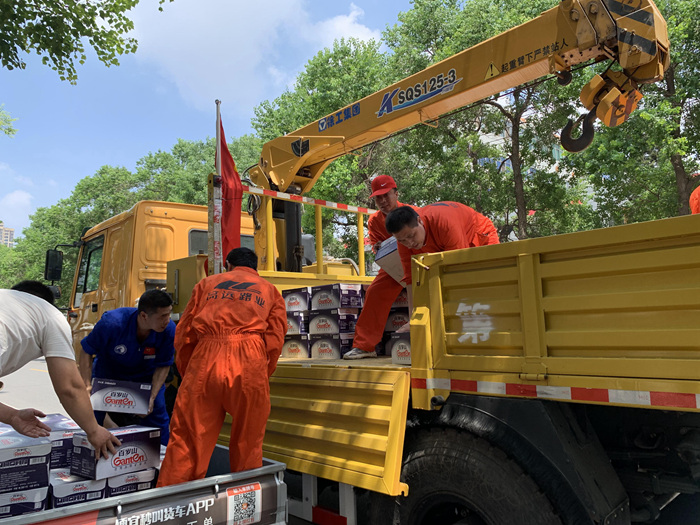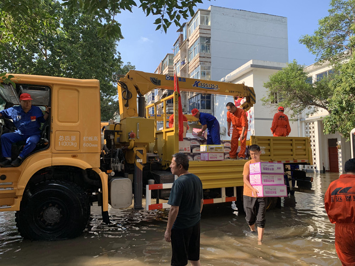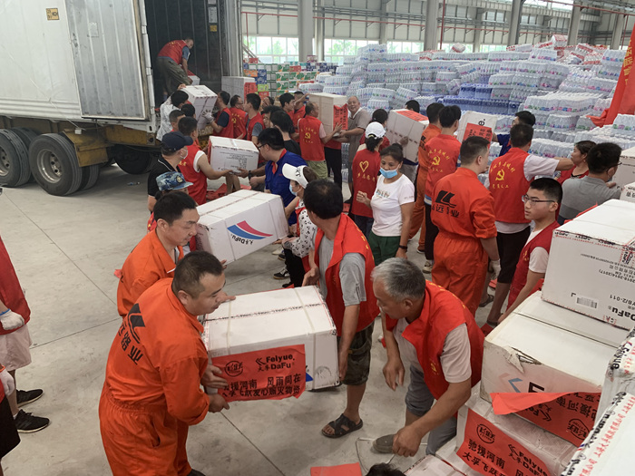 在暴雨過后,集團員工自發(fā)組成志愿者團隊,連續(xù)多日參與新鄉(xiāng)市高新區(qū)對外接收救援物資的分派點進行物資搬卸。